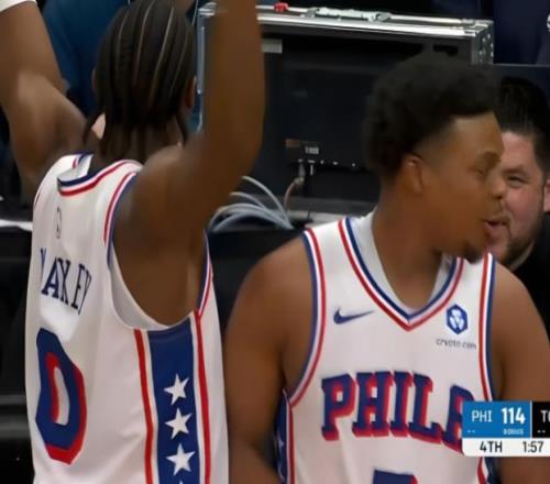 最终在全场球迷“我们要洛瑞”的漫天喊声中,76人主帅,同时也是前任猛龙主帅的尼克·纳斯大手一挥,这位身披76人球衣的猛龙冠军元老,在比赛最后1分57秒得到出场机会。