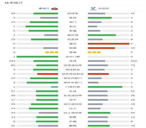 第33分钟,迅速扳平,勒费埃禁区迎球推射破门,桑德兰1-1