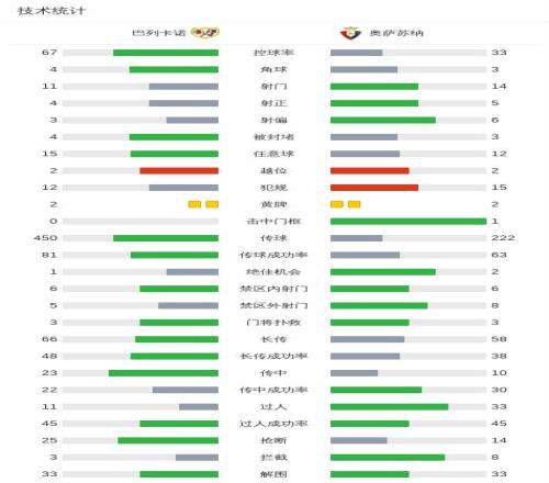 下半场补时第4分钟,奥萨苏纳球员蒙卡约拉助攻奥桑贝拉打入一球。
